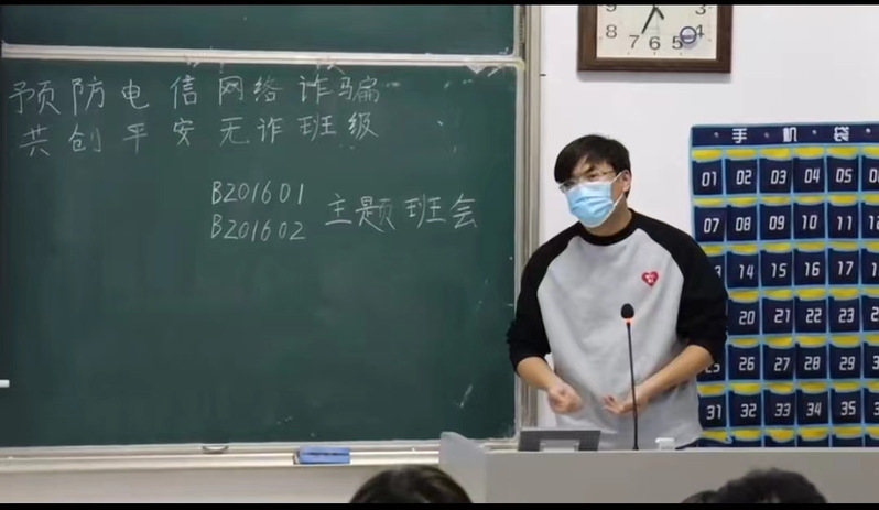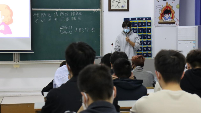 为提高同学们的安全防范意识,增强自我保护能力,进一步维护同学们的自身合法权益,2022年10月24日晚上六点三十,于锁金村教学楼604教室开展了以“预防电信网络诈骗,共创平安防诈班级”为主题的教育班会,本次班会由B201602班袁泽航同学主持,2020级信息工程专业全体同学参加。