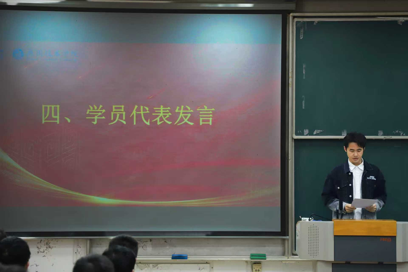 本期菁英人才班不仅为同学们提供了结识志同道合朋友的平台,也进一步坚定了他们为成为优秀大学生骨干而不断奋斗的决心。学员代表段宇航同学发言:菁英人才班将为同学们提供丰富的理论学习和实践机会,帮助大家在思想政治素质和综合素养方面得到全面提升。他呼吁同学们在今后的学习生活中,积极参与各类活动,培养组织协调能力,努力成为新时代的优秀青年。