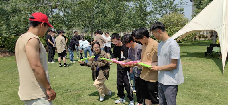 “传递小球”环节,成员们在相互接力的情况下让小球传递。大家齐心协力,不断调整策略,小球顺利传递的同时,团队的默契也在悄然提升。