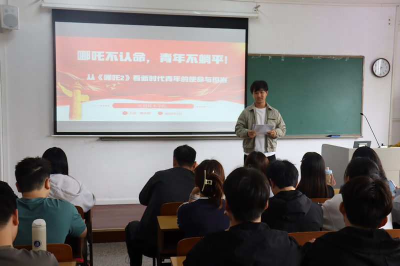 当前,部分大学生受社会竞争压力、就业焦虑等因素影响,出现“躺平”心态,表现为学习动力不足、目标模糊、消极应对挑战。2月26日2022级辅导员老师强志恒,给同学们带来了一场《哪吒不认命,青年不躺平》主题团课,以“哪吒”精神赋能当代大学生成长,点亮他们青春奋进之路。