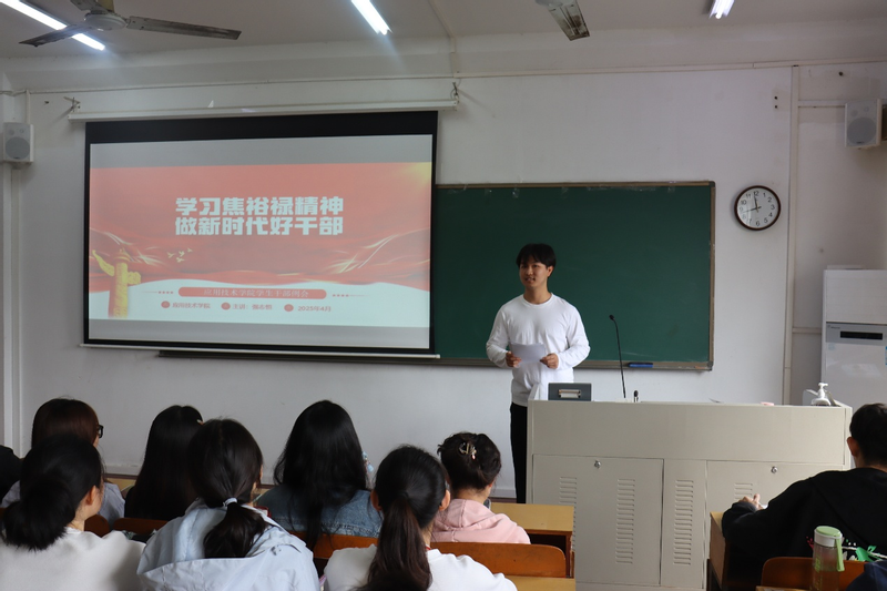为深入学习焦裕禄同志的公仆精神,引导广大青年从榜样事迹中汲取奋进力量,4月24日,强志恒老师以 “学习焦裕禄精神,做新时代好干部” 为主题,面相全员学生干部、学生党员授课。同学们共坐一堂,通过多维视角重温焦裕禄同志在兰考的奋斗历程,凝聚青春共识、明确担当方向。